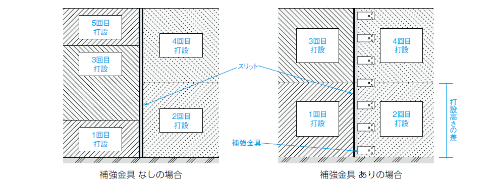 | 開口下に設けるスリット(腰壁など)はコンクリートの打設条件が厳しくなることが多いので補強金具のピッチは300mm以下を厳守してください。 |