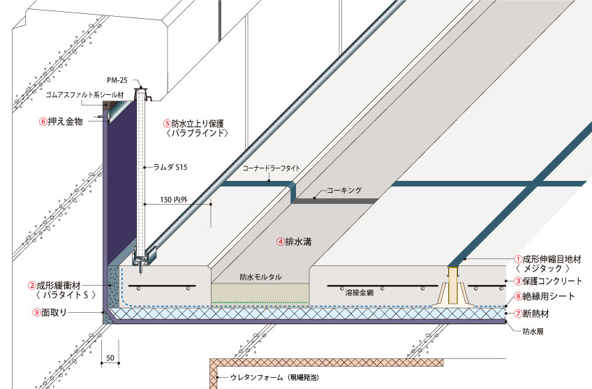 | ベース | 防水層を傷つけない材料とし、目地本体が容易に固定できるもの。 | ||