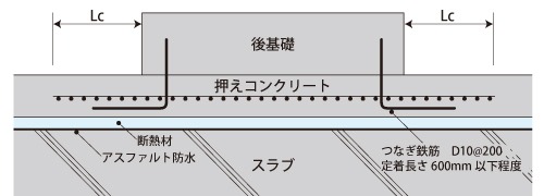 Lc≦600mm程度以下*Lc=押えコンクリートの配筋(メッシュ筋程度)の範囲 「建築設備耐震設計・施工指針2014年版」財団法人日本建築センターより抜粋 |