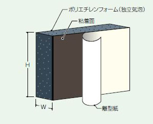 ※(W寸法40mm以上は受注生産) ※片面粘着加工なしの「サンマルタイト」(30倍発泡)や土木用目地板「ポリタイト」(15倍発泡)などの製品もご用意しております。