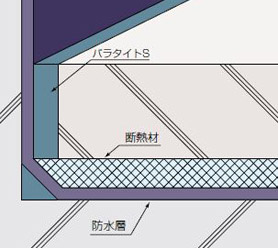 保護コンクリートの膨張力を吸収し、防水層を保護します。 立上り入り隅は、保護コンクリートの膨張によるダメージが大きく、防水層の事故防止に必要不可欠です。
